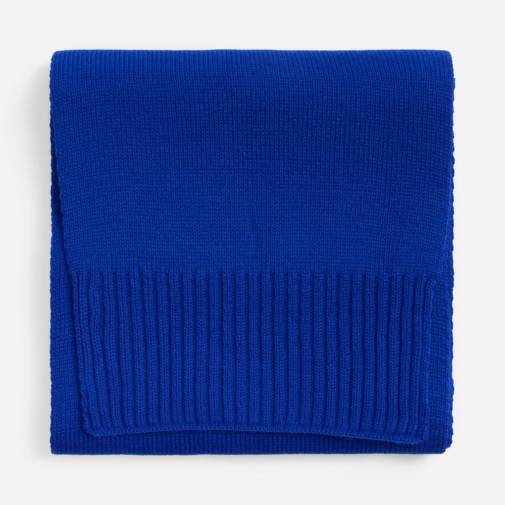 Классический однослойный шарф гладкой вязки. Края, связанные резинкой, придают изделию завершенный и аккуратный вид.