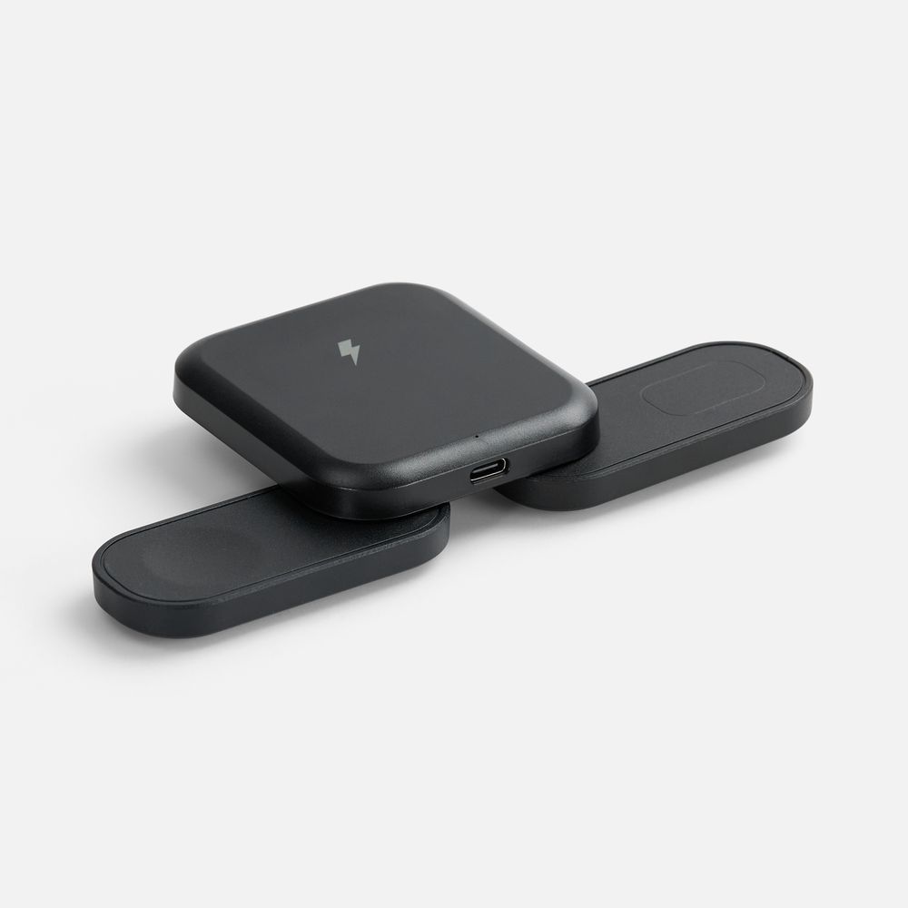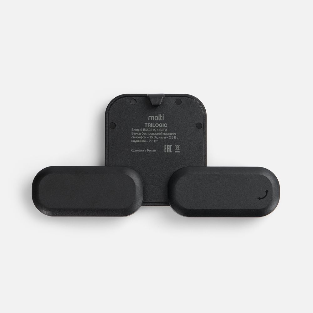 Trilogic — компактное устройство беспроводной зарядки для самых мобильных и современных пользователей. Площадки для зарядки наушников и часов легко складываются и не занимают много места, когда не используются: станцию удобно использовать не только в офисе, но и при разъездах.