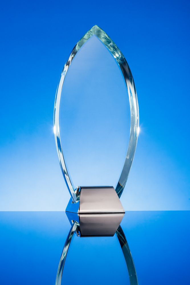 Конструкция награды разъемная: стеклянную часть стелы при необходимости можно вынуть из основания.