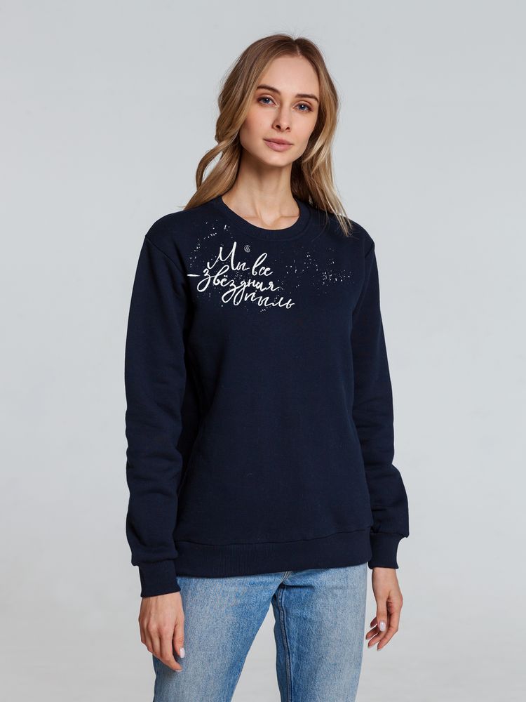 Когда проблемы кажутся нам большими, можно вспомнить, что мы и наша жизнь – всего лишь песчинки на фоне Вселенской бесконечности. Пролетаем на голубом шаре сквозь космос, а сами состоим из звездной пыли, как и все вокруг. С одной стороны — это напоминает, что все бренно и преходяще, с другой стороны — дарит чувство единства со всем окружающим – ведь звезды взорвались, чтобы мы жили.Классический кроеный свитшот унисекс. Манжеты, ворот и низ изделия отделаны резинкой. Внутренняя сторона без начеса.