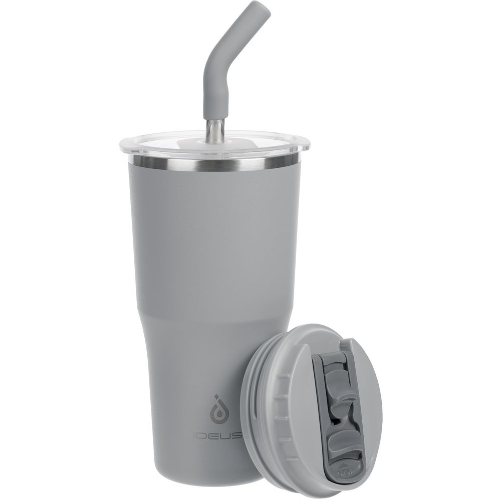 - 2 крышки в комплекте: одна на 100% герметичная с механизмом блокировки отверстия для питья, вторая — с отверстием для трубочки
