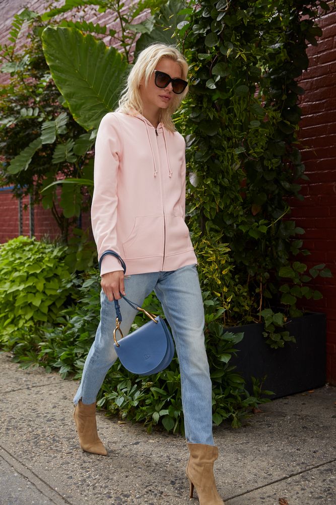 Женская толстовка на молнии с капюшоном.