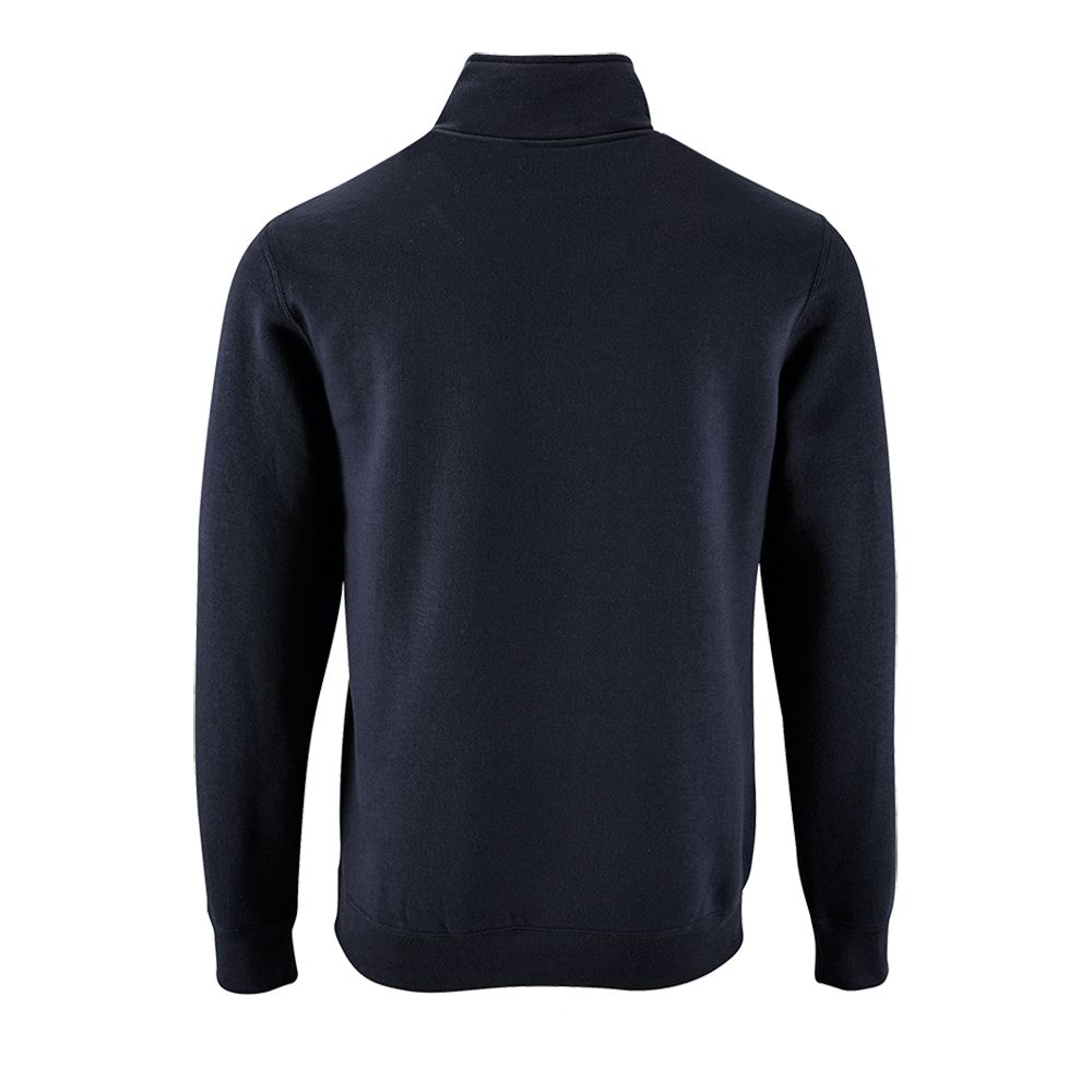 Толстовка с воротником-стойкой на молнии. Лейбл производителя в боковом шве изнутри, в шве горловины — только бирка с размером, что позволяет вам нанести свой логотип.