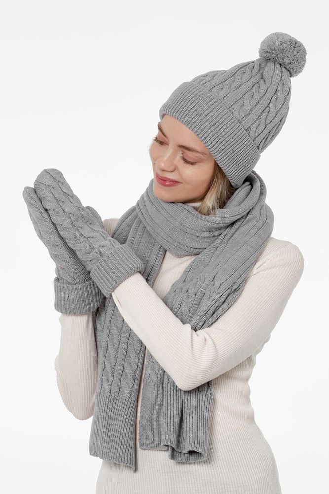 Варежки фактурной вязки с манжетой и подкладом из флиса.
