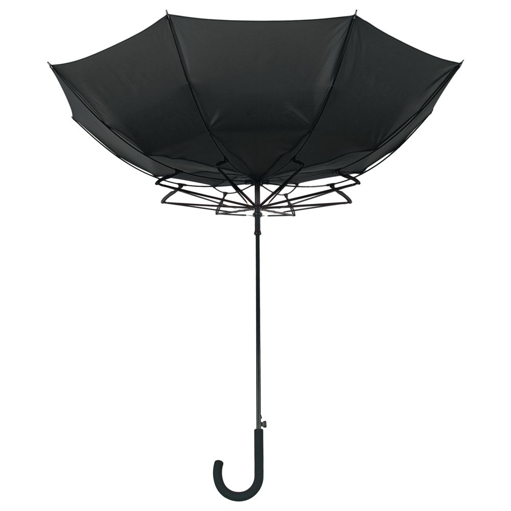 Зонт снабжен системой защиты от ветра. Если при экстремальных порывах ветра купол выгибается, то механизм пружинит, не давая спицам погнуться или сломаться.